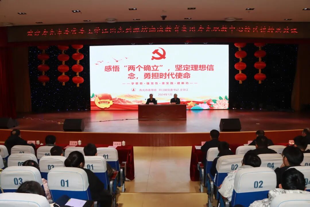 为学习贯彻习近平新时代中国特色社会主义思想主题教育,全面落实“思政课是落实立德树人根本任务的关键课程”指示精神,1月4日下午,寿光市委常委、羊口镇党委书记王学江同志走进潍坊渤海教育集团寿光职教中心校区,为师生们讲授了一堂政治上有高度、理论上有深度、情感上有温度、知识上有广度的思政课。会议由学校党委书记、校长付伟宗同志主持,学校领导班子、中层干部、党员和学生1000多人参与聆听。