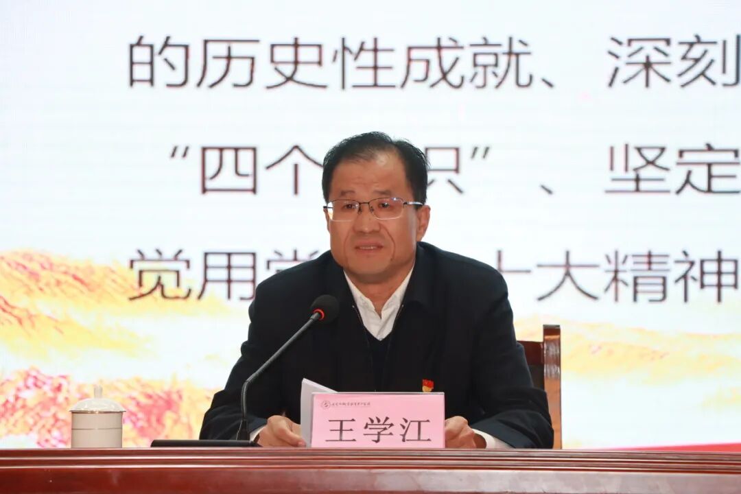 课堂上,王学江同志以《感悟“两个确立”,坚定理想信念,勇担时代使命》为题,结合自身的工作经验、独到见解和切身感悟,用深入浅出的语言、生动翔实的例子,讲解了“两个确立”“四个意识”“四个自信”“两个维护”等的具体内容、深刻内涵,以及决定性意义等,教育广大教师要把全面贯彻党的教育方针作为检验“四个意识”、践行“两个维护”的具体行动,深刻领悟“两个确立”的决定性意义,切实增强“四个意识”、坚定“四个自信”、做到“两个维护”;要贯彻新发展理念、主动服务和融入新发展格局,从全局出发思考问题、谋划工作,不断增强教育服务能力;要正确看待问题、正确看待社会、正确看待世界,以德立身、以德立学、以德施教。教育引导学生要学会思考、对比、感悟、内化与升华,树立正确的世界观、人生观、价值观,厚植爱国主义情怀;勉励同学们要紧跟时代步伐,聚焦鲁班文化,厚植工匠精神,养成专业素养,锤炼奋斗之心,牢记“请党放心,强国有我”的峥峥誓言,努力学习,为全面建设社会主义现代化国家、全面推进中华民族伟大复兴而团结奋斗。
