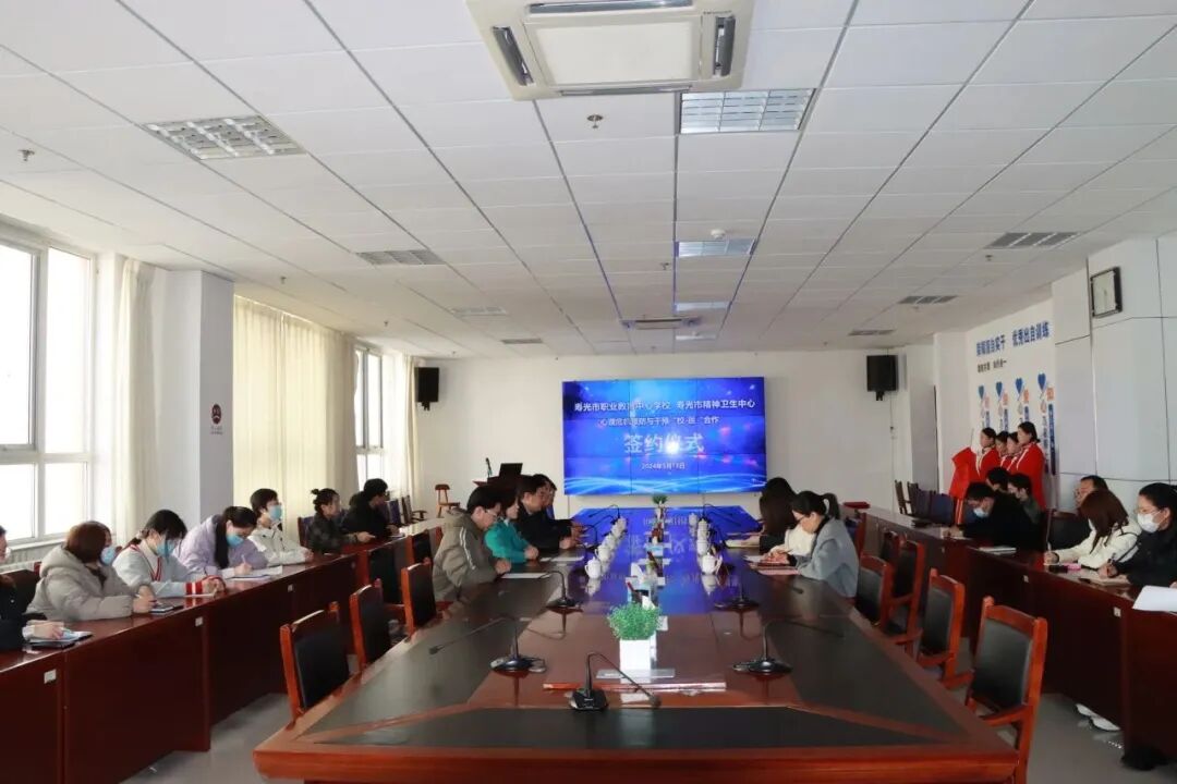 为进一步完善学校心理健康教育体系,做好师生心理保健与精神卫生中心服务工作,帮助学生健康成长,3月13日,潍坊渤海教育集团寿光职教中心校区与寿光市精神卫生中心举行“心理危机预防与干预‘校-医’合作签约仪式”,双方秉承着真诚合作、积极联动的原则,建立医校合作关系,为学校师生心理健康保驾护航。