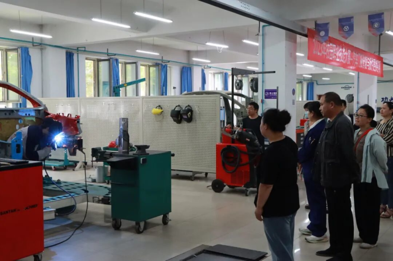 家长们实地观摩学生实训场所,深度体验产教融合体系下的职教大课堂。