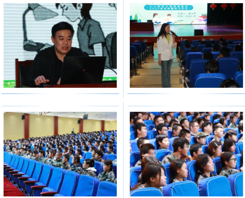 此次活动形式丰富多样,分为心理讲座与多元互动活动两大板块。在心理讲座环节,学校特别邀请寿光市精神卫生中心的专家团队,包括业务院长王勇、心理科主任杨立平在内的五位专业人士亲临现场。他们凭借深厚的专业知识和丰富的实践经验,为2025级全体新生分别作了题为《珍爱生命,关爱自我》《一路同行,向心筑梦》的专题讲座,参与讲座的新生人数多达800人。现场师生认真聆听、积极记录,不时点头呼应,在专业指导中收获心理健康“金钥匙”。