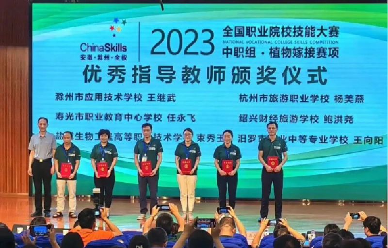 7月11日至13日,2023年全国职业院校技能大赛中职组“植物嫁接”赛项在安徽省滁州市应用技术学校举行,寿光职教中心马彩萍同学以全国第三名的好成绩夺得一枚金牌,指导教师任永飞被评为全国优秀指导教师。