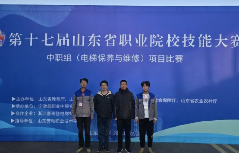 12月3日—5日,第十七届山东省职业院校技能大赛(中职组)电梯保养与维修赛项在宁津县职业中专举行,全省15支代表队参赛,职教中心学生郑立业、桑鑫源获团体一等奖。