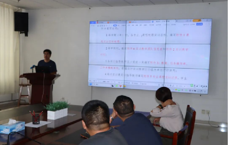 会上,重点研讨了学校实训体系建设方案,着重从实训教学体系建设的背景意义、建设的主要目标、重点推进任务、组织保障、督查落实等方面做了阐述。要求,各专业在推进真实场景实训室升级改造及数字化建设的基础上,优化实训教学团队,进一步梳理实训教学目标和完善课程标准,积极对接新工艺、新技术开发实训教学项目,根据学期实训教学的实施性教学计划,编写系列实施性教学资源,创新实训教学模式与评价,扎实推进学校“课堂革命”。