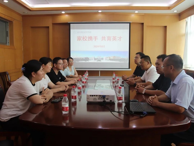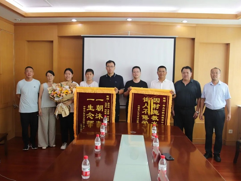 学校党委书记何祥坤、党委委员马丛贞及高考21级学部相关老师等在学校培训一处会议室热情接待了前来送锦旗的优秀毕业生和家长。