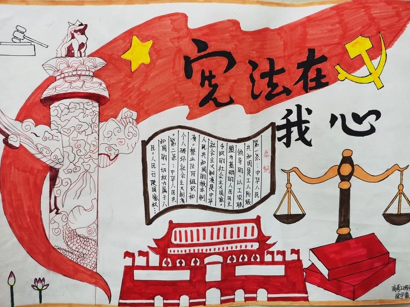 “学宪法 讲宪法”手抄报比赛中,同学们积极参与,用手中的画笔描绘出自己心中的宪法世界,展现了他们对宪法的理解和感悟。