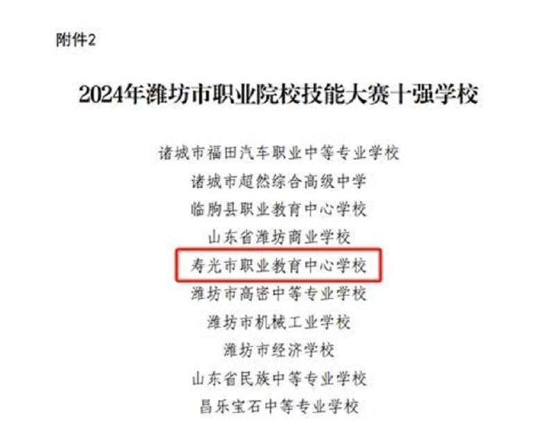 另外,潍坊市人力资源和社会保障局公布了2024年潍坊市职业技能大赛优秀组织单位、突出贡献单位、优秀选手、优秀指导教练和优秀裁判员名单,寿光市技工学校(寿光职教中心)被评为“突出贡献单位”。邱续东、王钊瑞、孙方方、任冰洁等老师被评为职工组“优秀选手”,祝令远、刘振家、王胜源等同学被评为学生组“优秀选手”,张玉岗、孙方方等老师被评为“优秀指导教练”,任永飞、林亮等老师被评为“优秀裁判员”。
