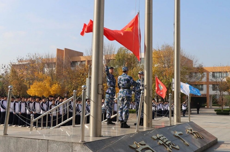 11月5日,潍坊渤海教育集团寿光职教中心校区全体师生齐聚尚德广场,举行庄严而有教育意义的系列主题宣讲暨升旗仪式。