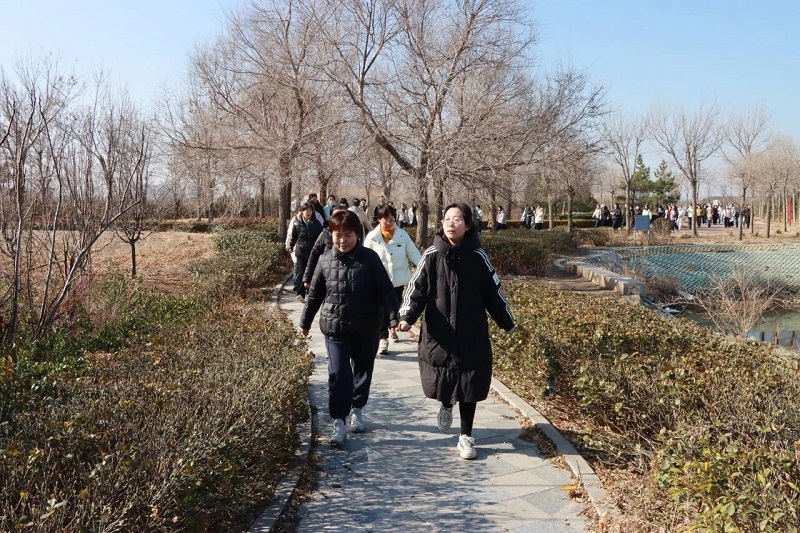 微风拂面,春意盎然。女教职工们精神饱满、步履轻盈,沿着环湖步道结伴而行,欢声笑语萦绕在步道之上,成为春日里一道靓丽的风景线。